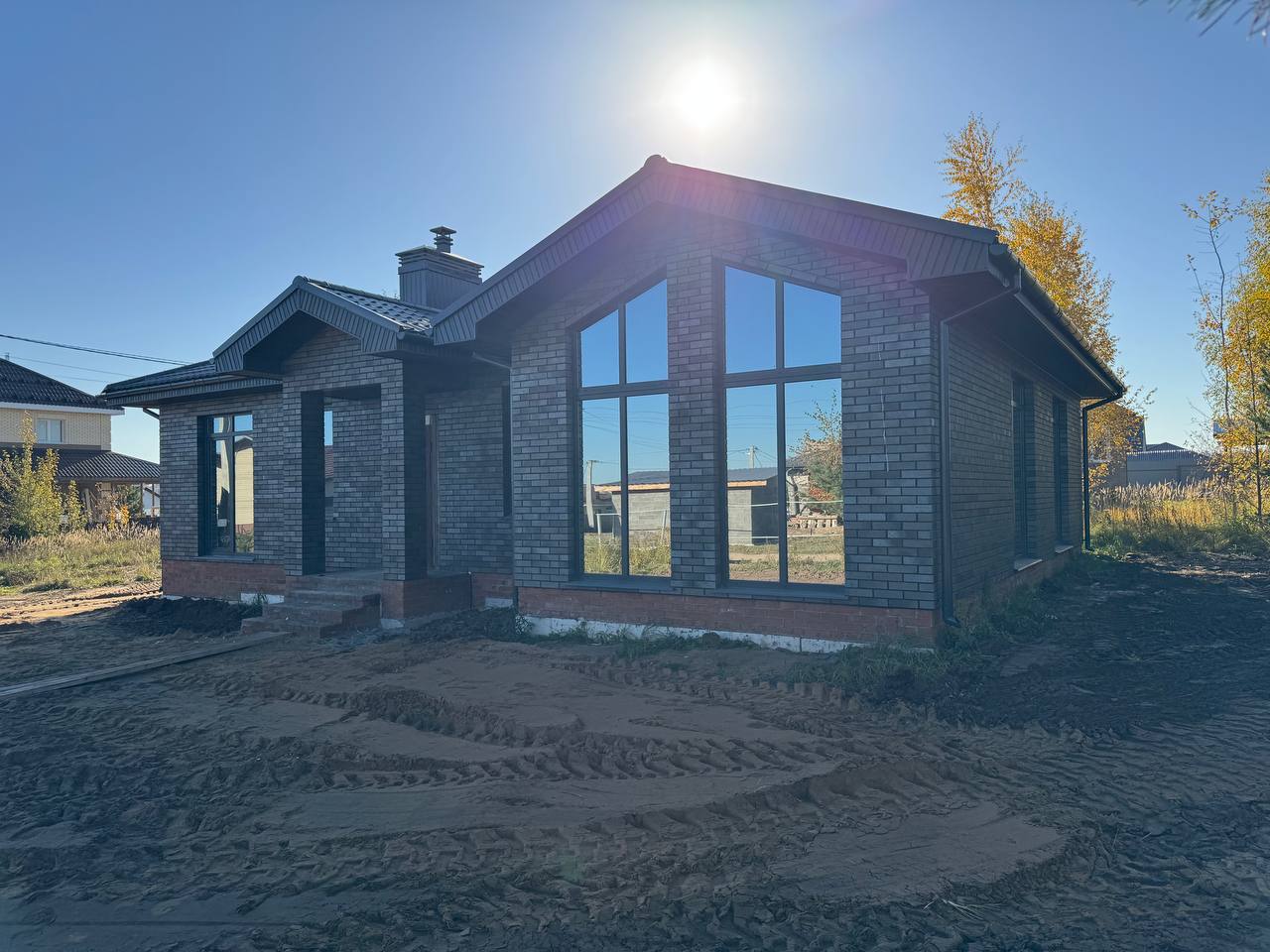 Общая площадь дома 125 кв.м. На первом этаже расположены просторная кухня-гостиная, спальня, котельная и санузел. На втором этаже три спальни, большая ванная комната.